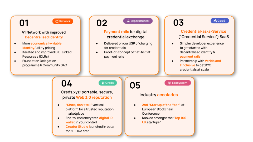 We’re centring ourselves this year around 5 central workstreams and six core Product Development Goals that we believe offer the best route to adoption, usage of our products, retention and ultimately growth of Decentralised Identity as a whole. This year, we aim to take our vision of a world where individuals have control over their data and make it tangible.