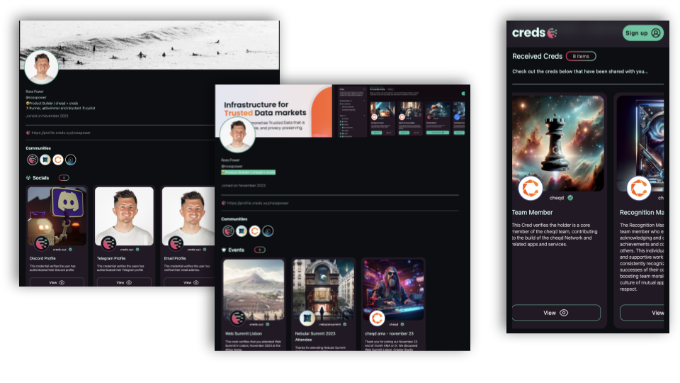 Our network functionality and tooling offer developers and customers the ability to solve real-world problems in the market, with a one-of-a-kind ability to charge for digital credential exchange. Our Software Development Kits (SDKs) and cheqd Studio SaaS product are enterprise-ready with builders leveraging them for high-volume real-world use cases. Lastly, Creds.xyz — our community-centred reputation app — is in general availability and offers communities a whole new model for trust, loyalty, reputation and rewards.
