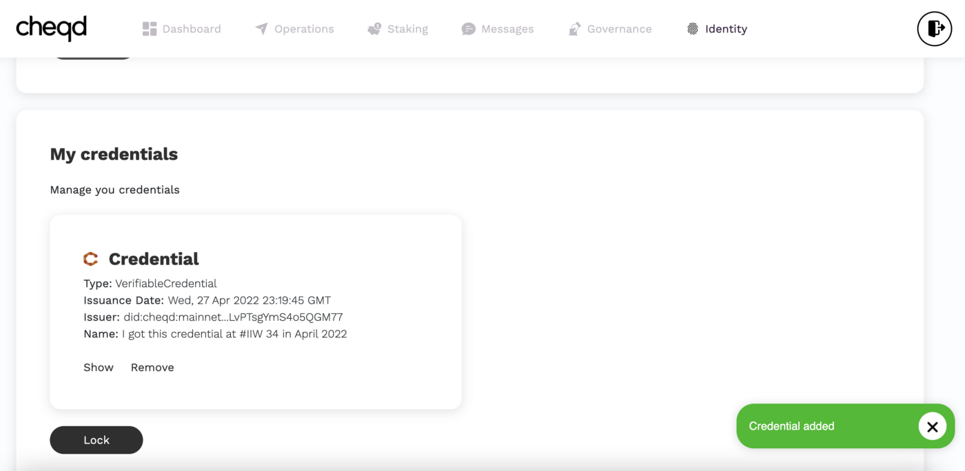 Demo wallet for IIW built by cheqd