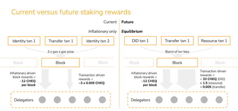 Using the example in the diagram below, any block with a DID written within it is worth approximately ~four times a standard block where the block reward is ~12 $CHEQ. This means rewards on the network will begin to rise with adoption.