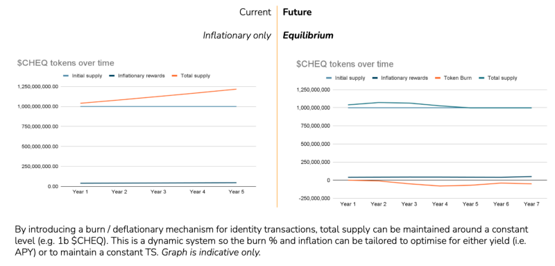Alongside this, $CHEQ is currently inflationary (where staking rewards come from), with only slashing, tombstoning or no-with-veto slashing providing any deflationary pressure.