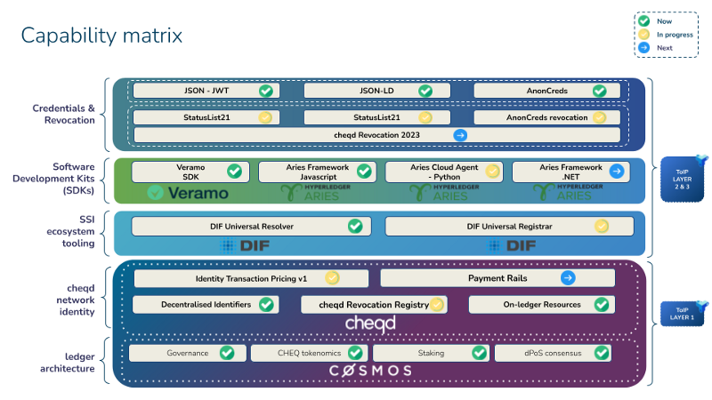 Not bad going for a company just over a year old — check out the image below as an example of how cheqd now stacks up against Hyperledger Indy: