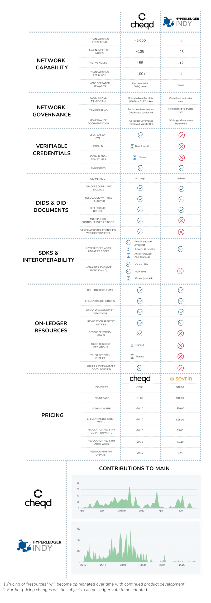 To learn more about cheqd pricing and features comparison to Indy based networks, please email: partnerships@cheqd.io.