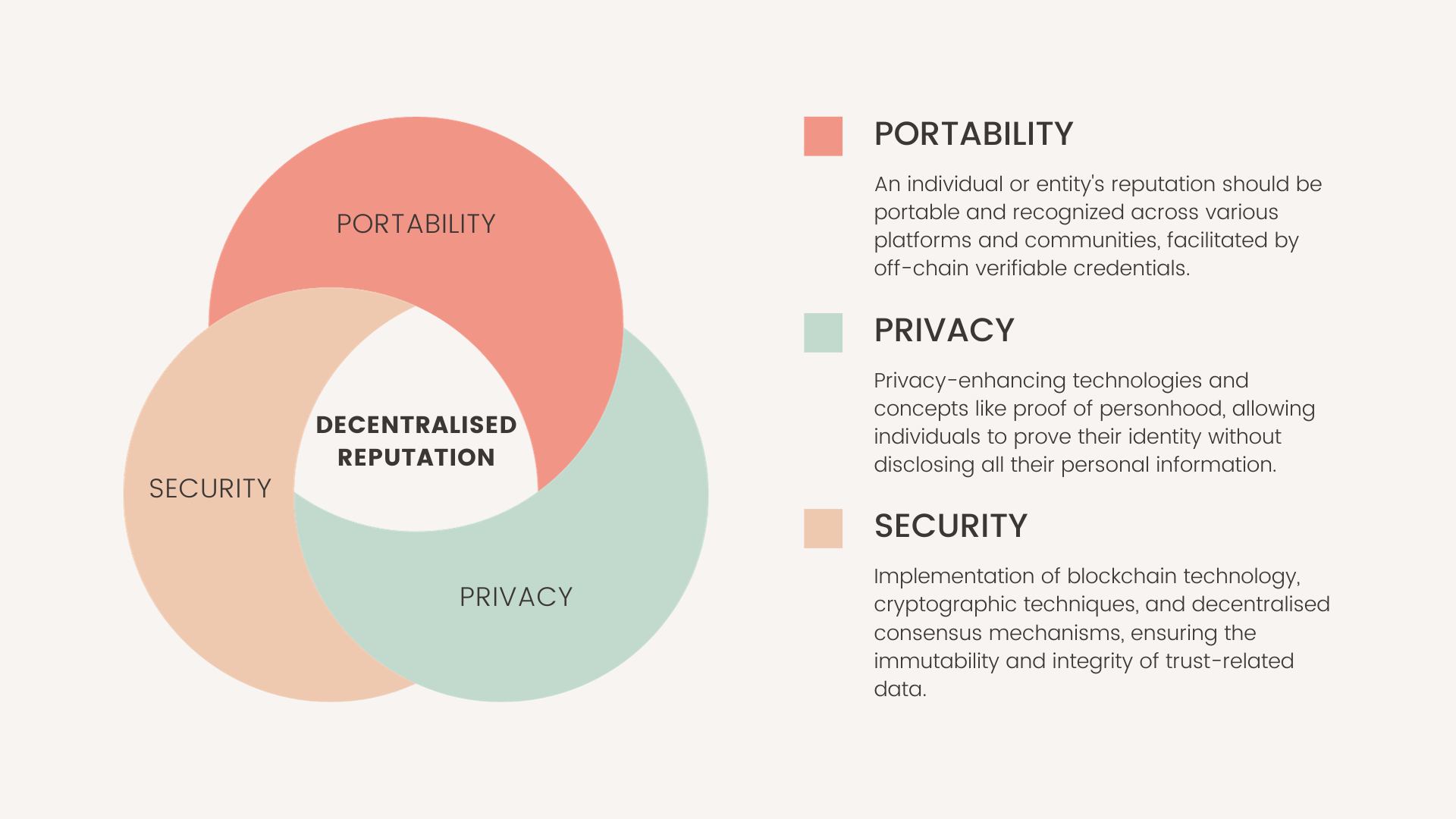 Privacy is another paramount consideration in the sphere of decentralised reputation. While blockchain technology upholds the value of transparency through public ledger systems, the exposure of personal information raises serious privacy concerns. To address these issues, decentralised reputation systems must incorporate privacy-enhancing technologies and concepts like proof of personhood. Proof of personhood allows individuals to prove their identity without disclosing all their personal information, ensuring that their reputation assessments can be conducted while preserving their privacy.