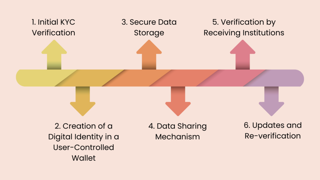 Reusable KYC revolutionises the traditional identity verification process by leveraging digital technology to create a more efficient, secure, and user-centric system. This innovative approach enables users to control their verified identity information, allowing for seamless, secure sharing and updates. Here’s how it works: