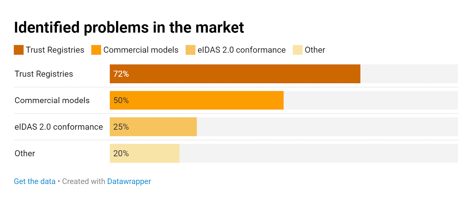 92% identified either (1) Trust Registries; or (2) Commercial models for credential ecosystems as being a blocker in their projects or clients reaching production environments.