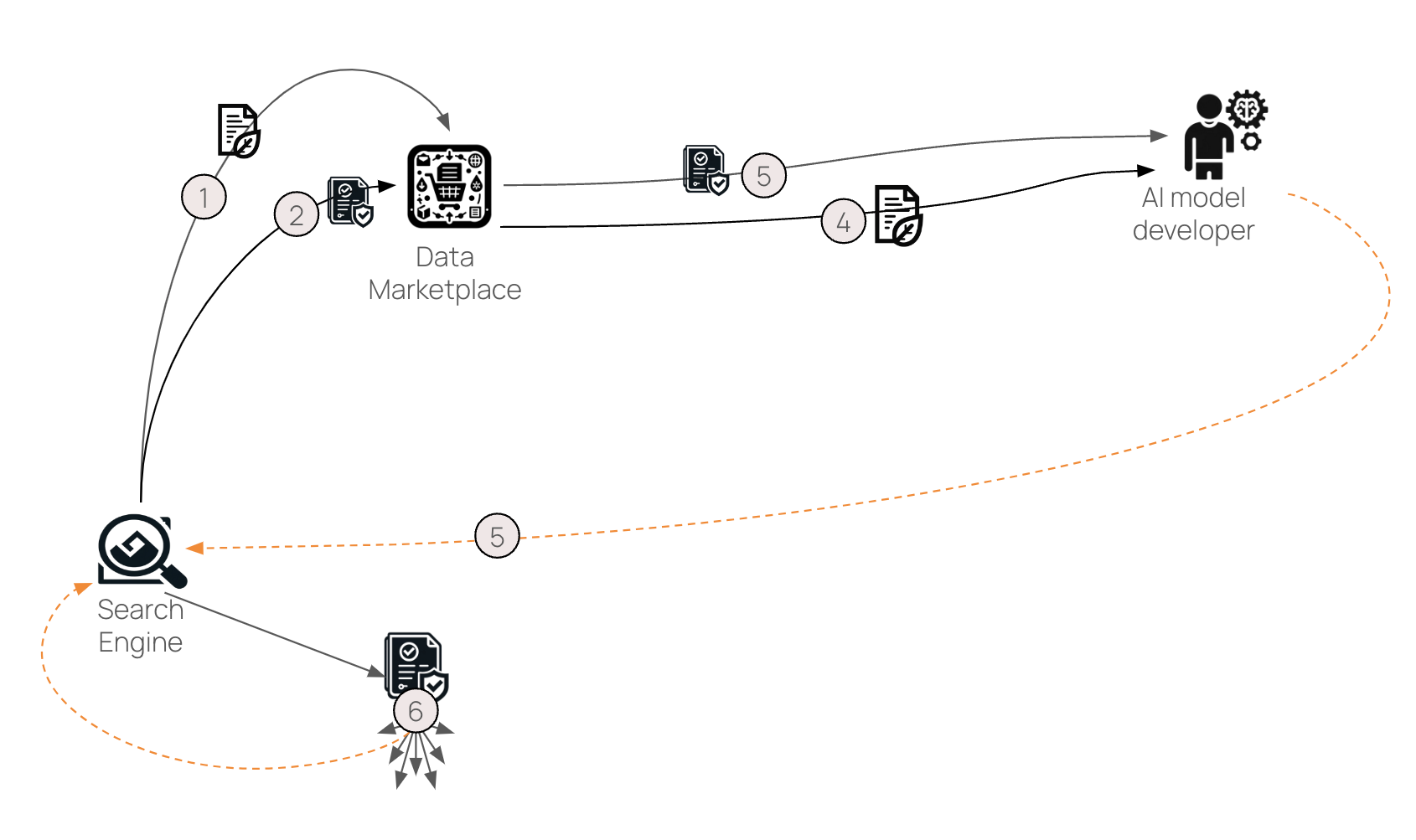 - Placed on a data marketplace, an AI model developer requests verifiable credentials confirming that the dataset doesn’t contain synthetic material