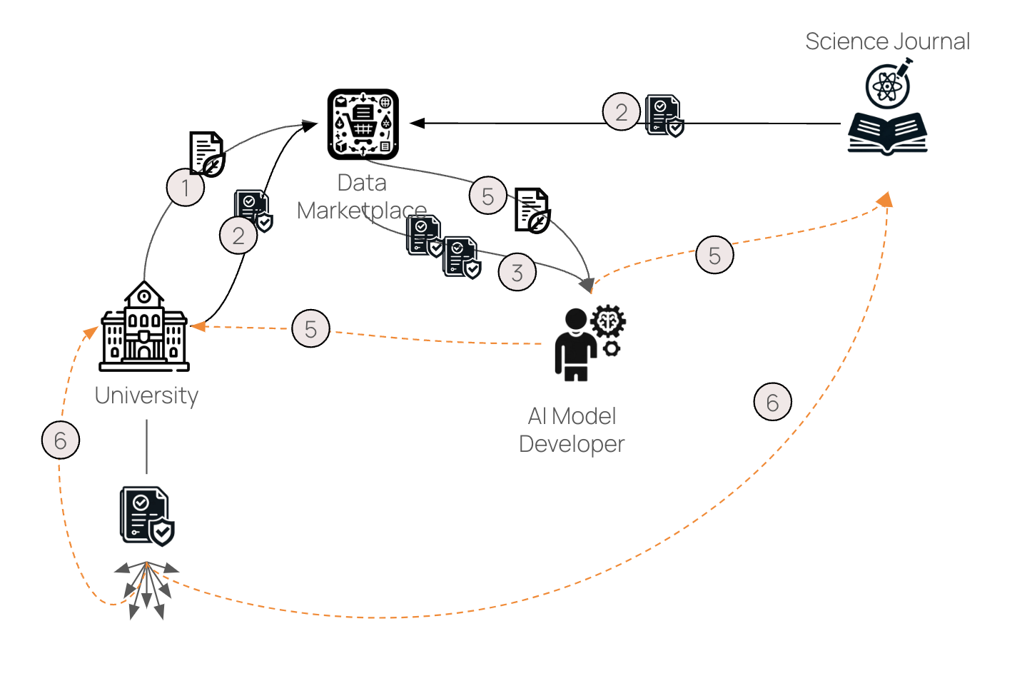 - Confirming that the data is accurate, the model developer purchases the dataset.