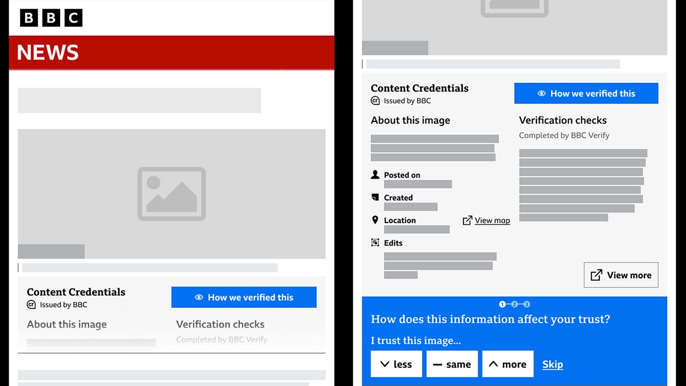 - Images or videos then published online with an organisation such as the Associated Press or the BBC, would come with a Content Credential which consumers can check to see its known origins and whether the picture was AI generated. If a picture was discovered to lack content credentials, or exhibit inconsistencies within them, a reputable news agency would not publish it.