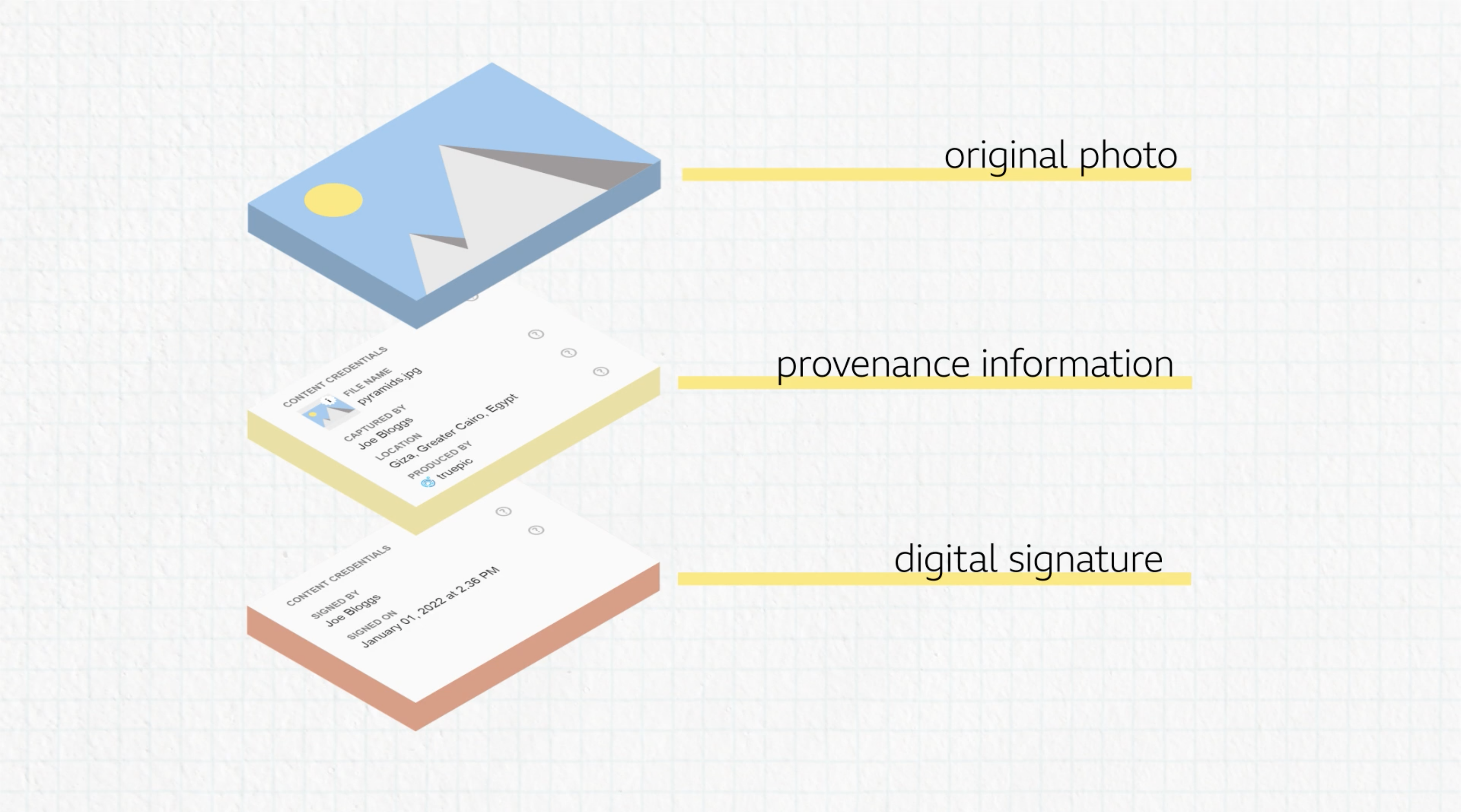 - Images or videos then uploaded to the internet would come with a content credential which consumers can check to see its known provenance