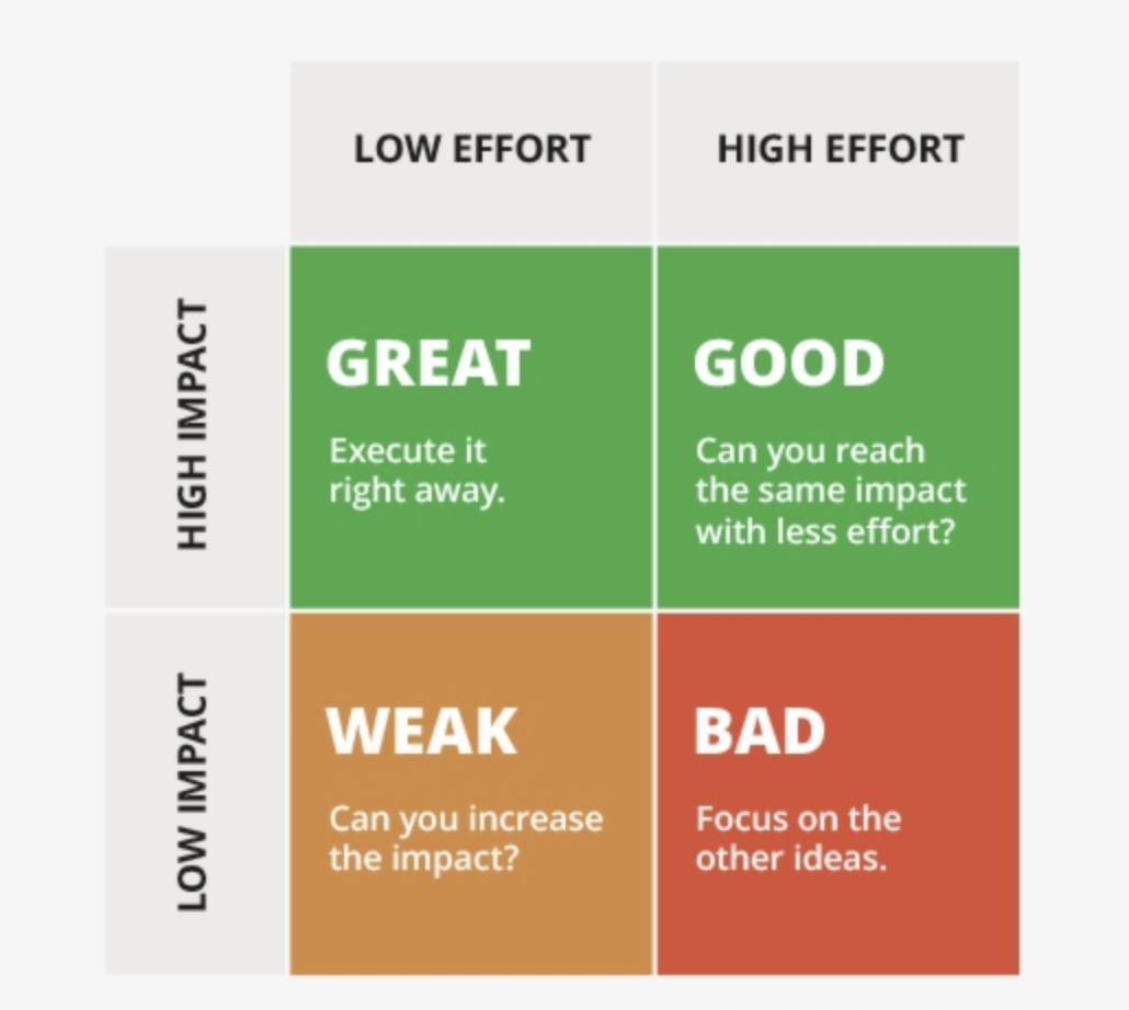Once we have gathered responses we’ll work through our backlog using our existing understanding and assumptions, informed by the feedback we receive, to prioritise our next steps using the framework below (at a high level).